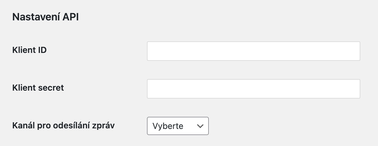 Kanál pro odesílání zpráv – Výběr kanálu, kterým se budou SMS zprávy odesílat. Pod jedním účtem můžete mít různé kanály s různým nastavením. Nabídka bude po instalaci prázdná. Nejdříve je potřeba mít zadané Klient ID a Klient Secret, pak uložíte nastavení. Během uložení se načtou dostupné kanály a po novém načtení stránky je najdete v nabídce. Nabídka se aktualizuje při každém uložení nastavení.