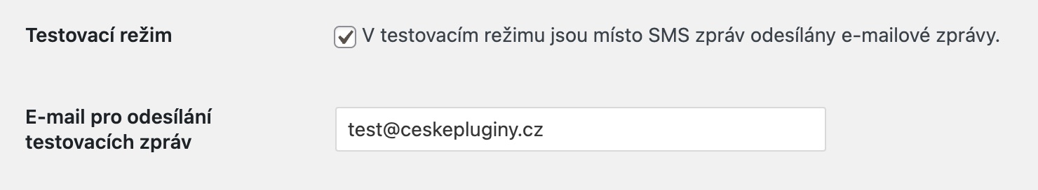 Abyste si mohli v klidu otestovat zprávy bez potřeby odesílání SMS, je tady funkce testovací režim. Při zaškrtnutí této volby se budou zprávy odesílat na zadaný e-mail.
