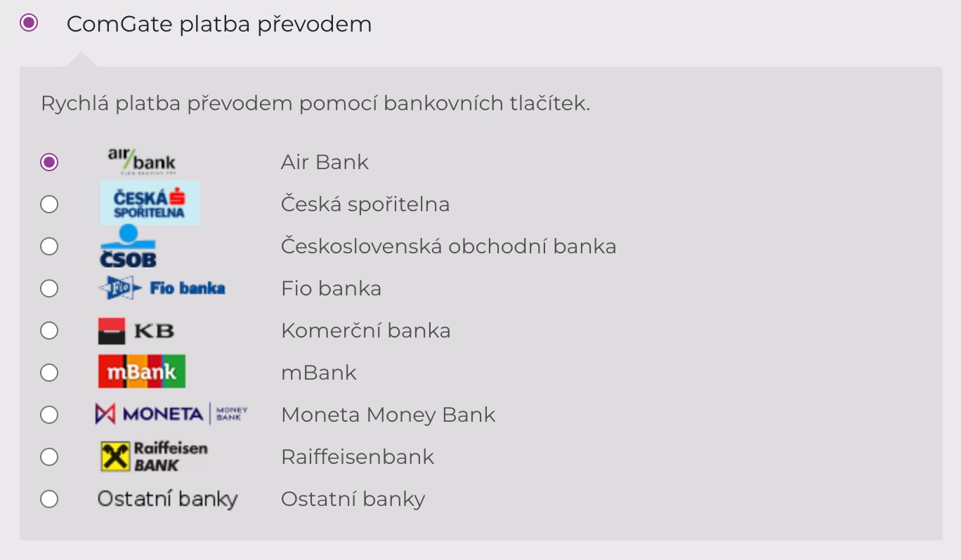 Tato platební metoda nebývá platební bránou Comgate aktivována automaticky a je třeba si o ni zažádat.