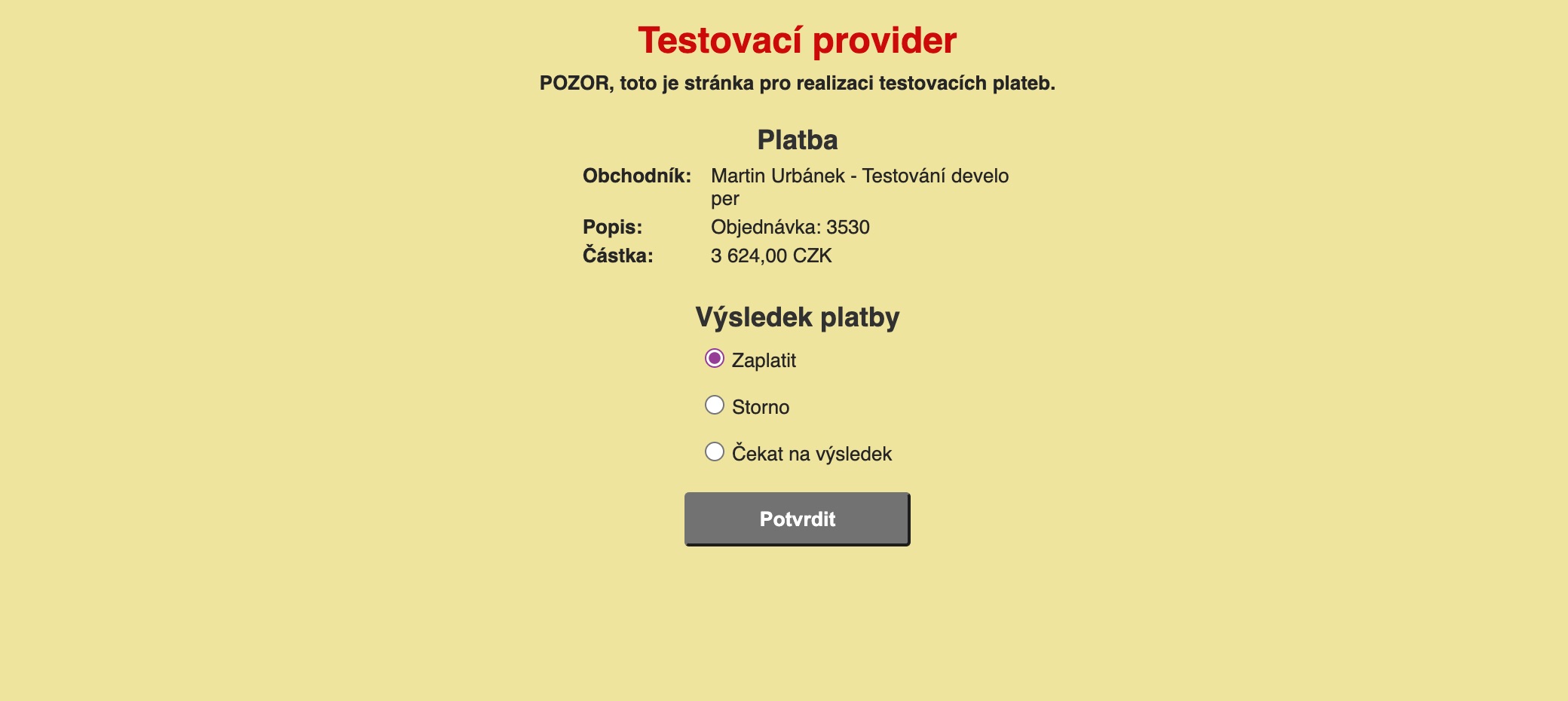 V případě, že by měli vaši zákazníci přístup k platebním metodám, které jsou v testovacím režimu, tak by si mohli sami potvrzovat platbu bez potřeby vlastnit jakoukoliv platební kartu, nebo účet v bance. Jednoduše by si to odklikli. Nezapomínejte proto před uvedením platebních metod do ostrého provozu vše zkontrolovat.
